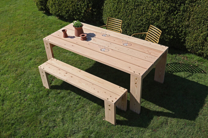 Douglas is een duurzame houtsoort en gaat lang mee. Onbehandeld Douglas hout vergrijsd. Wilt u dit vertragen dan kunt u het meubel eens per jaar lichtjes opschuren en behandelen met een buitenolie of beits van bijvoorbeeld Woca of Rubio monocoat.